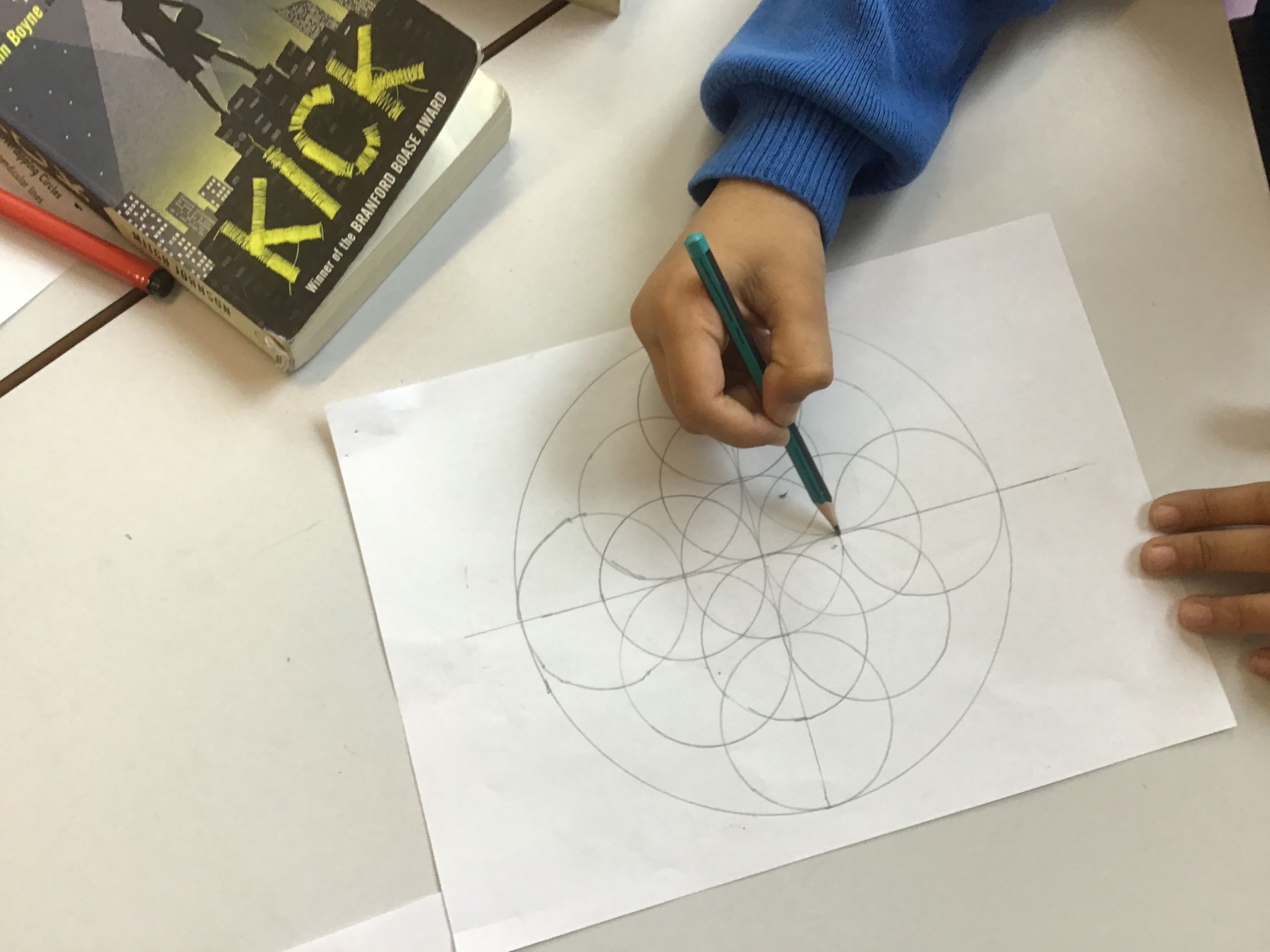 For Maths (STEM Week) day, pupils created geometric patterns in the style of Islamic artists, using mathematical principles and equipment-compass.